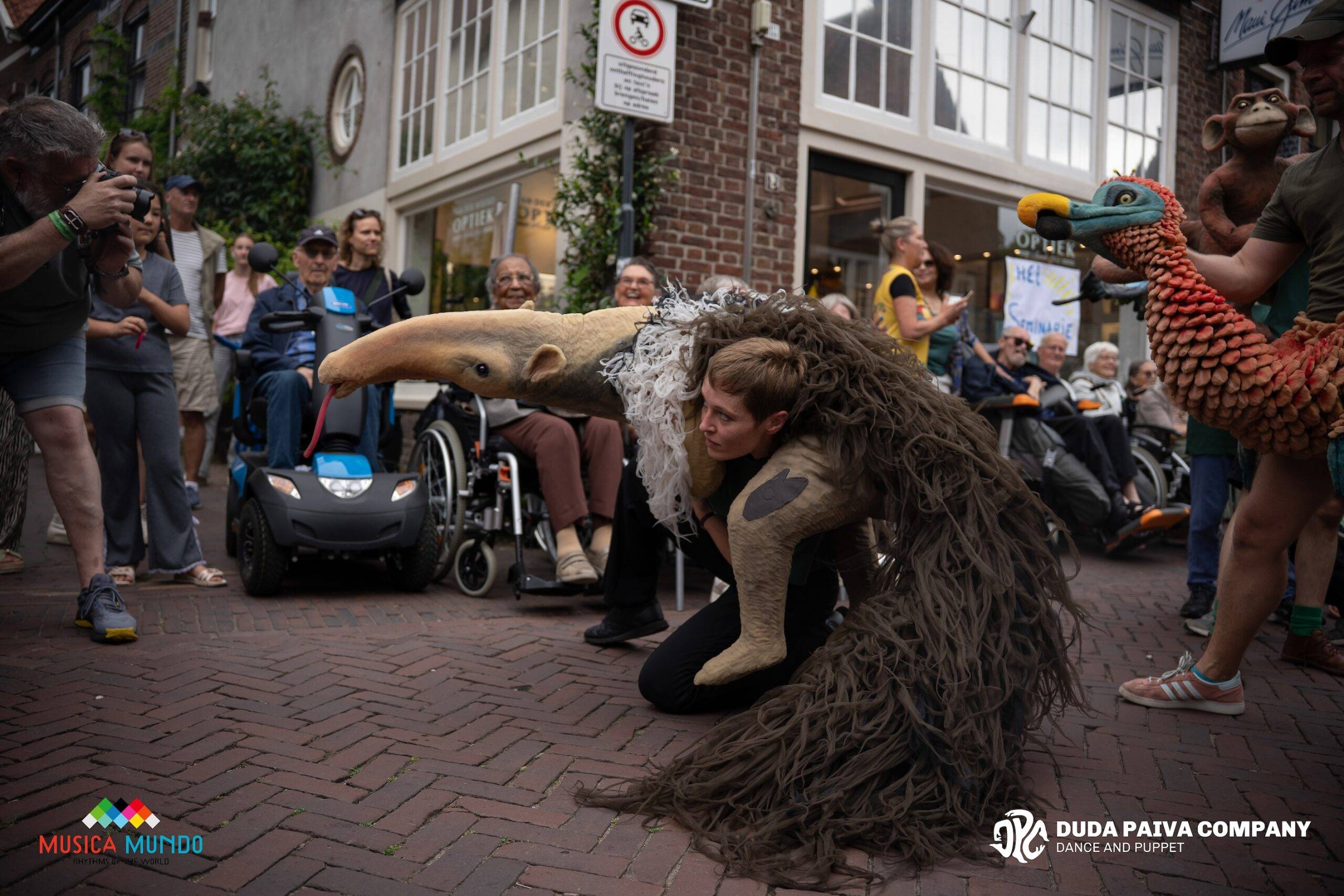 Onder leiding van choreograaf Duda Paiva zorgen meer dan 50 artiesten voor een levendige parade vol muziek, dans en schuimrubberen figuren. Onderweg ervaar je de energieke drums van GDFL Brassband, de salsadansers van ML Dance Centre, de moves van een urban dance-groep, de dierenpoppen van Duda Paiva Company, en een optreden van de Red Rebels. Samen vormen zij een onvergetelijke beleving die stil maakt en in beweging zet.
